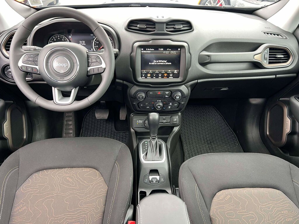 Certified. Black Clearcoat 2023 Jeep Renegade Latitude 4WD 9-Speed 948TE Automatic 1.3L I4 2 Keys / Fobs Included, 4WD, APPLE CARPLAY / ANDROID AUTO - AUDIO STREAMING, Back Up Camera, Bluetooth, Hands Free, Bought Here - Serviced Here - Traded Here!, CERTIFIED, Clean CARFAX, Clean Vehicle History Report, Ambient LED Interior Lighting, Automatic Headlamps, Black Side Roof Rails, Cluster 7" TFT Color Display, Cornering Front Fog Lamps, Dual-Pane Panoramic Power Sunroof, Exterior Mirrors w/Supplemental Signals, Hood Decal, Keyless Entry w/Panic Alarm, Leather Wrapped Shift Knob, Premium Audio, Premium Cloth Low-Back Bucket Seats, Quick Order Package 22P Upland, Remote Start System, Sun/Sound Group, Upgraded Exterior Color Mirror, Upland Edition, Wheels: 17" x 7" Glossy Black Diamond Cut, Windshield Wiper De-Icer.