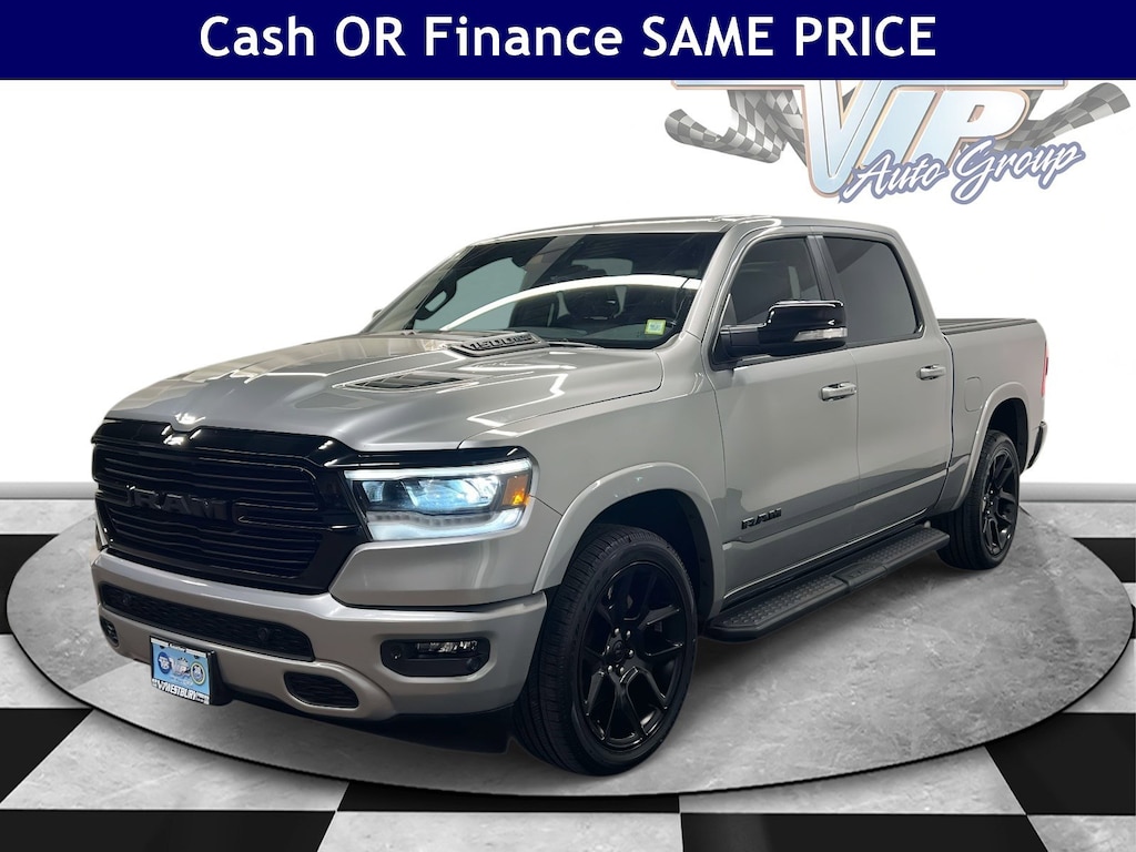 LARAMIE LEVEL II EQUIPMENT GROUP Remote Tailgate Release, harman/kardon® 19 Speaker Premium Sound, Auto High Beam Headlamp Control, Blind Spot & Cross Path Detection, Rain Sensitive Windshield Wipers, ParkSense Front/Rear Park Assist w/Stop, Wireless Charging Pad, Foam Bottle Insert (Door Trim Panel), Radio: Uconnect 5 Nav w/8.4 Display, USB Host Flip, Disassociated Touchscreen Display, HD Radio, For More Info, Call 800-643-2112, Integrated Voice Command w/Bluetooth®, GPS Navigation, SiriusXM w/360L, All Radio Equipped Vehicles, Connected Travel & Traffic Services, All R1 High Radios, NIGHT EDITION Twill Film Appliques, Accent Color Premium Power Mirrors, Black Headlamp Bezels, Sport Performance Hood, Body Color Door Handles, MOPAR Black Tubular Side Steps, Black Exterior Truck Badging, Black Interior Accents, Dual Exhaust w/Black Tips, Body Color Front Bumper, Grille Surround 3 Black Texture 2 Black, Body Color Rear Bumper w/Step Pads, Black Painted Exterior Mirrors Caps, ENGINE: 5.7L V8 HEMI MDS VVT Active Noise Control System, Heavy Duty Engine Cooling, Passive Tuned Mass Damper, GVWR: 7,100 lbs, Dual Rear Exhaust w/Bright Tips, HEMI Badge, 220 Amp Alternator, DUAL-PANE PANORAMIC SUNROOF LED Dome/Reading Lamp, Dome Dual LED Reading Lamp, LEATHER TRIMMED BUCKET SEATS Bucket Seats, Full Length Upgraded Floor Console, TRANSMISSION: 8-SPEED AUTOMATIC (8HP75), WHEELS: 22 X 9 FORGED ALUMINUM Tires: 285/45R22XL BSW All Season, Pirelli Brand Tires. Ram Laramie with Billet Silver Metallic Clearcoat exterior and Black interior features a 8 Cylinder Engine with 305 HP at 6400 RPM*.