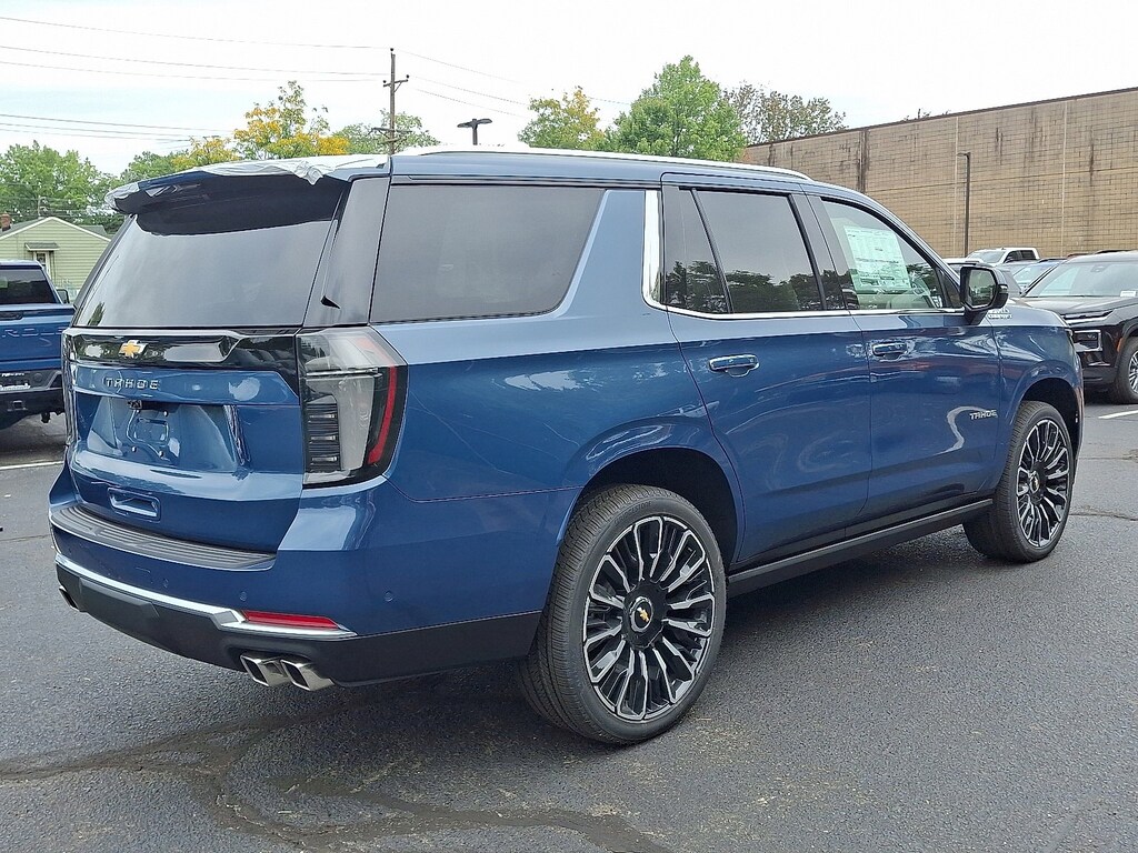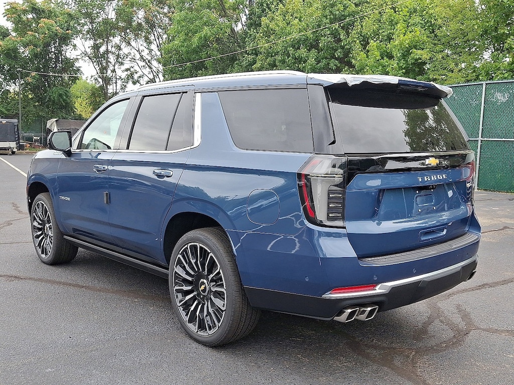 Lakeshore Blue Metallic 2025 Chevrolet Tahoe High Country 4WD 10-Speed Automatic with Overdrive EcoTec3 6.2L V8 4WD, Jet Black/Mocha Leather.