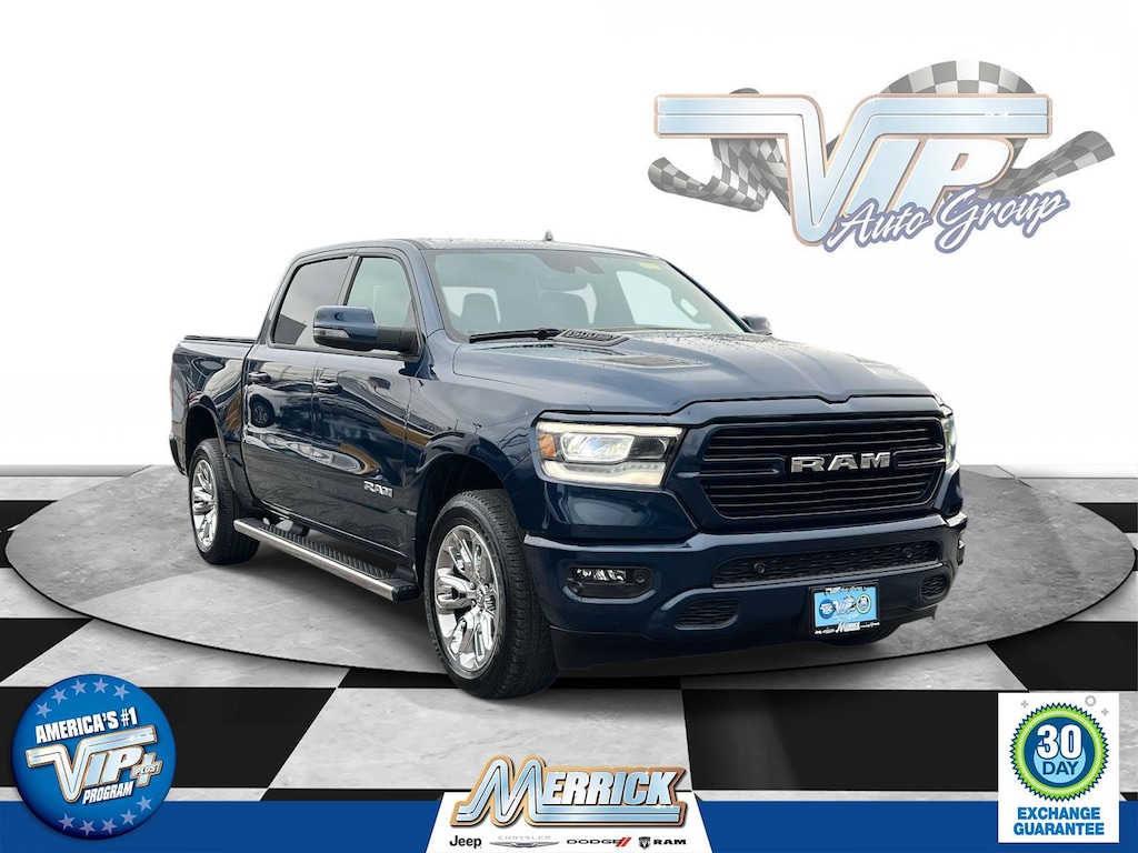 Patriot Blue Pearlcoat 2023 Ram 1500 Laramie 4WD 8-Speed Automatic HEMI 5.7L V8 Multi Displacement VVT eTorque 2 Keys / Fobs Included, 4WD, APPLE CARPLAY / ANDROID AUTO - AUDIO STREAMING, Back Up Camera, Bluetooth, Hands Free, CARFAX One Owner, CERTIFIED, Dual Zone Climate Control, LOW MILES, Leather Seats, Service Records Available!, VIP Program Included, * * BUY FROM A TRUSTED FAMILY OWNED DEALERSHIP, SATISFYING CUSTOMERS SINCE 1957! * *, 12" Touchscreen Display, 2nd Row In Floor Storage Bins, 4G LTE Wi-Fi Hot Spot, Apple CarPlay, Auto High Beam Headlamp Control, Bed Utility Group, Black Interior Accents, Blind Spot & Cross Path Detection, Body Color Exterior Mirrors, Body Color Front Bumper, Body Color Premium Power Mirrors, Body Color Rear Bumper w/Step Pads, Connected Travel & Traffic Services, Connectivity - US/Canada, Disassociated Touchscreen Display, Electric Shift-On-Demand Transfer Case, Foam Bottle Insert (Door Trim Panel), For Details, Visit DriveUconnect.com, For More Info, Call 800-643-2112, Front Door Accent Lighting, Front LED Fog Lamps, Global Telematics Box Module (TBM), Google Android Auto, GPS Antenna Input, GPS Navigation, Grille Surround 3 Body Color Tex 2 Black, HD Radio, Integrated Center Stack Radio, Integrated Voice Command w/Bluetooth, Laramie Level 1 Equipment Group, LED Reflector Headlamps, MOPAR 4 Adjustable Cargo Tie-Down Hooks, MOPAR Spray In Bedliner, Navigation System, ParkSense Front/Rear Park Assist w/Stop, Pick-Up Box Lighting, Quick Order Package 27H Laramie, Radio: Uconnect 5 Nav w/12.0" Display, Rain Sensitive Windshield Wipers, RAM Grille Badge - Chrome, Rear Door Accent Lighting, Rear Power Sliding Window, Rear Window Defroster, Remote Tailgate Release, SiriusXM Radio Service, SiriusXM w/360L, Sport Appearance Package, Sport Decal, Sport Performance Hood, USB Host Flip, Wheels: 20" x 9" Premium Painted w/Inserts.