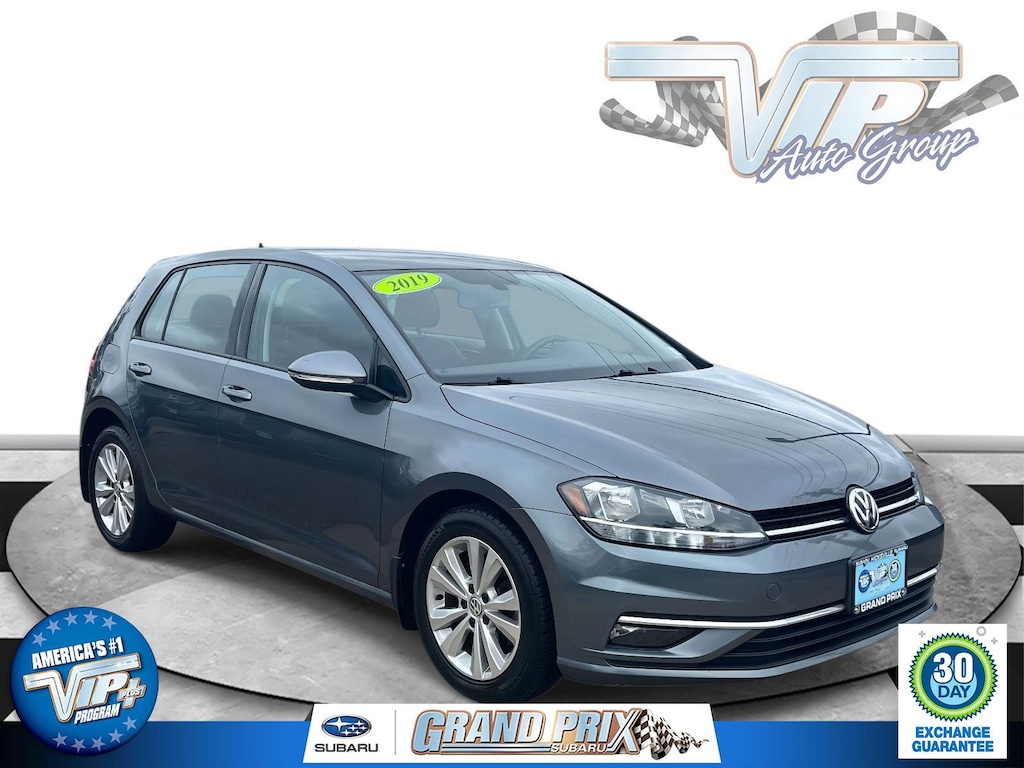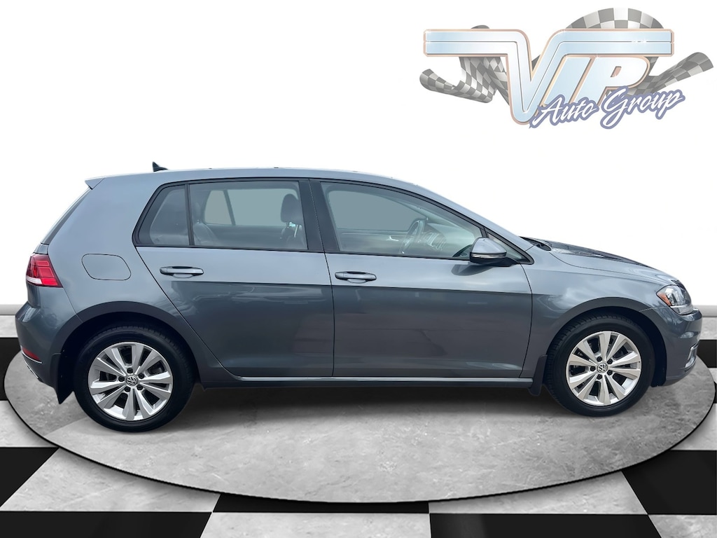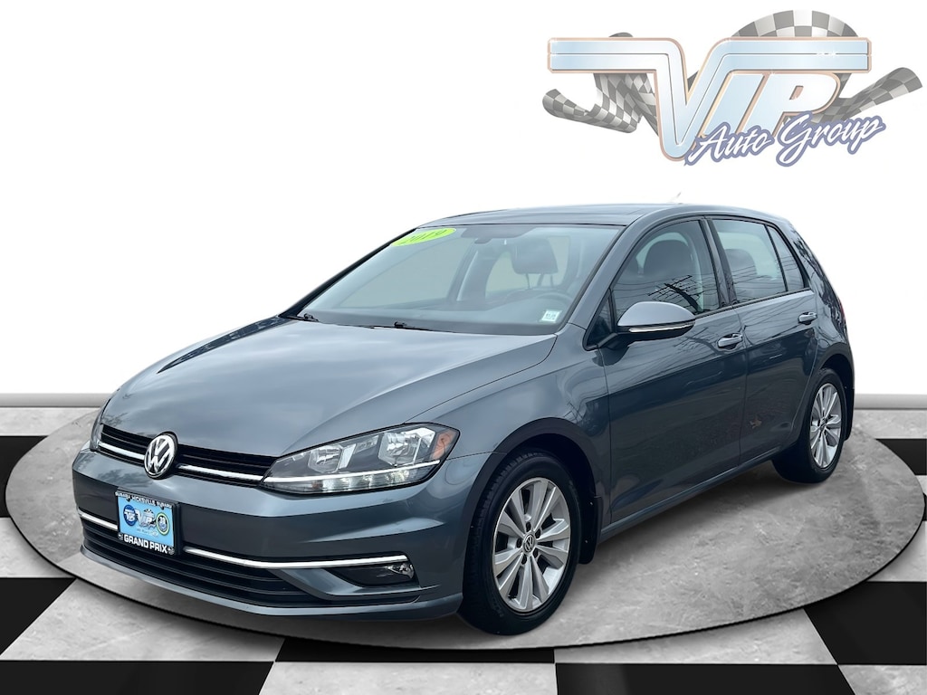 Clean CARFAX. Platinum Gray Metallic 2019 Volkswagen Golf TSI SE 4-Door 8-Speed Automatic with Tiptronic 1.4L TSI 29/37 City/Highway MPG Titan Black Premium Synthetic.